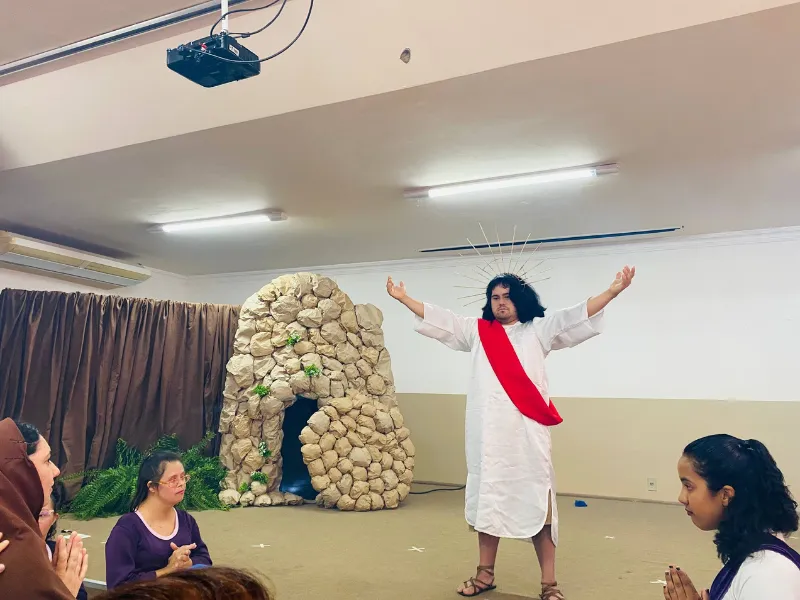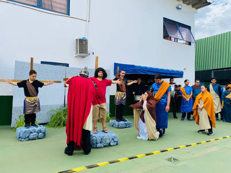 A Escola Maria Montessori – APAE Anápolis viveu, nesta data, um momento especial e repleto de significado com a realização da Via Sacra, promovida pelo projeto de artes e protagonizada pelos alunos da instituição.